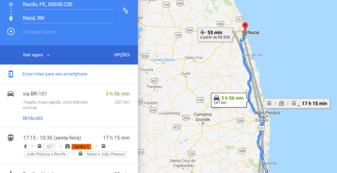 A distância entre a cidade de Recife e a cidade de Natal é de 286 km. O tempo estimado do percurso da viagem entre as duas cidades é de aproximadamente 3 horas. Rodoviário: Distância …